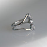 Sometimes one piece says it all. This triple reverse stone ring is edgy, unique, and a stunning statement piece. It is made of fine Sterling Silver and the high quality CZ. Cubic Zirconia is well known as a substitute for diamond, due to its high hardness and great fire. But in recent years, it has established itself as a gorgeous gem in its own right. Stones are set upside down for extra edge.