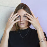From the red carpet to the gym, this delicate minimalist bar necklace is an everyday must-have staple piece. While the bar necklace can easily stand alone, it also plays well layered with other necklaces. Pairs perfectly with our dainty crescent moon necklace and long spike necklace. This trendy, sleek double bar necklace is the picture of versatility.