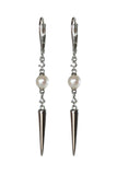 These sophisticated yet edgy sterling silver earrings are a must-have! Each earring sparkles with two round 3mm high quality Cubic Zirconia stones and one 5mm genuine pearl. Earrings measure approximately 53mm from top to bottom.